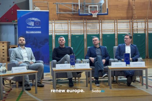 V sklopu moderiranih pogovorov srednješolcev z evropskimi poslankami in poslanci pod skupnim naslovom »Če bi jaz odločal_a, bi …«, se je danes v Brežicah tokratnega srečanja na temo vojna in mir v Ukrajini udeležil evropski poslanec Marjan Šarec.